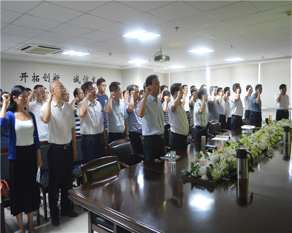 其次,由集团公司机关一支部书记、综合管理部经理祁红军同志带领大家重温入党誓词。全体党员起立,右手握拳,高举耳侧,凝视党旗,宣读入党誓词,庄重神圣,掷地有声。